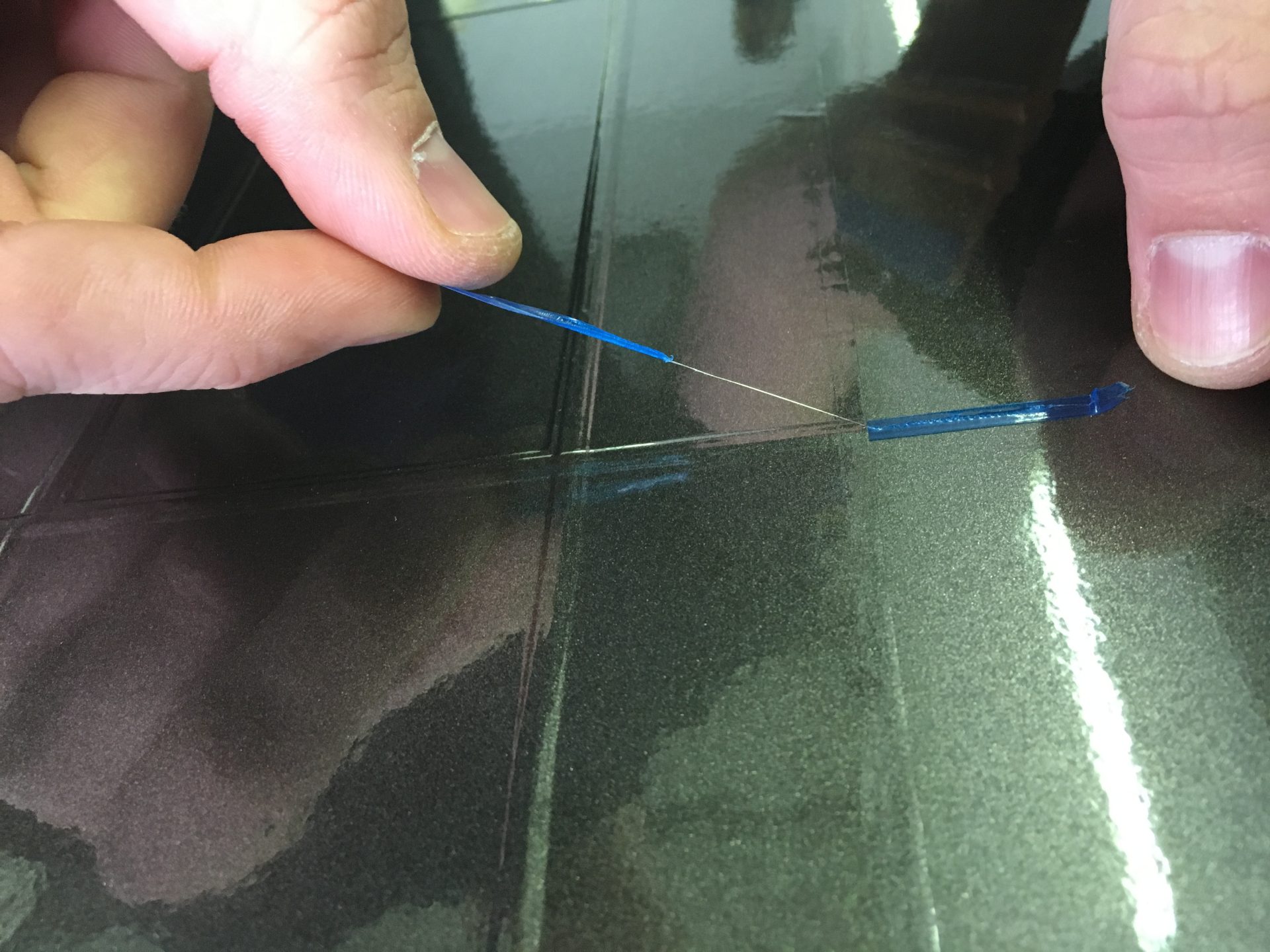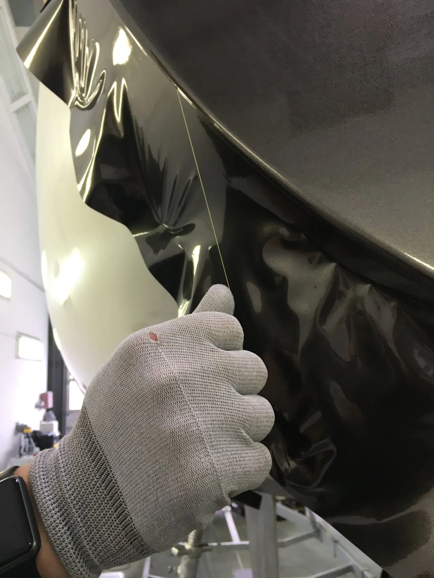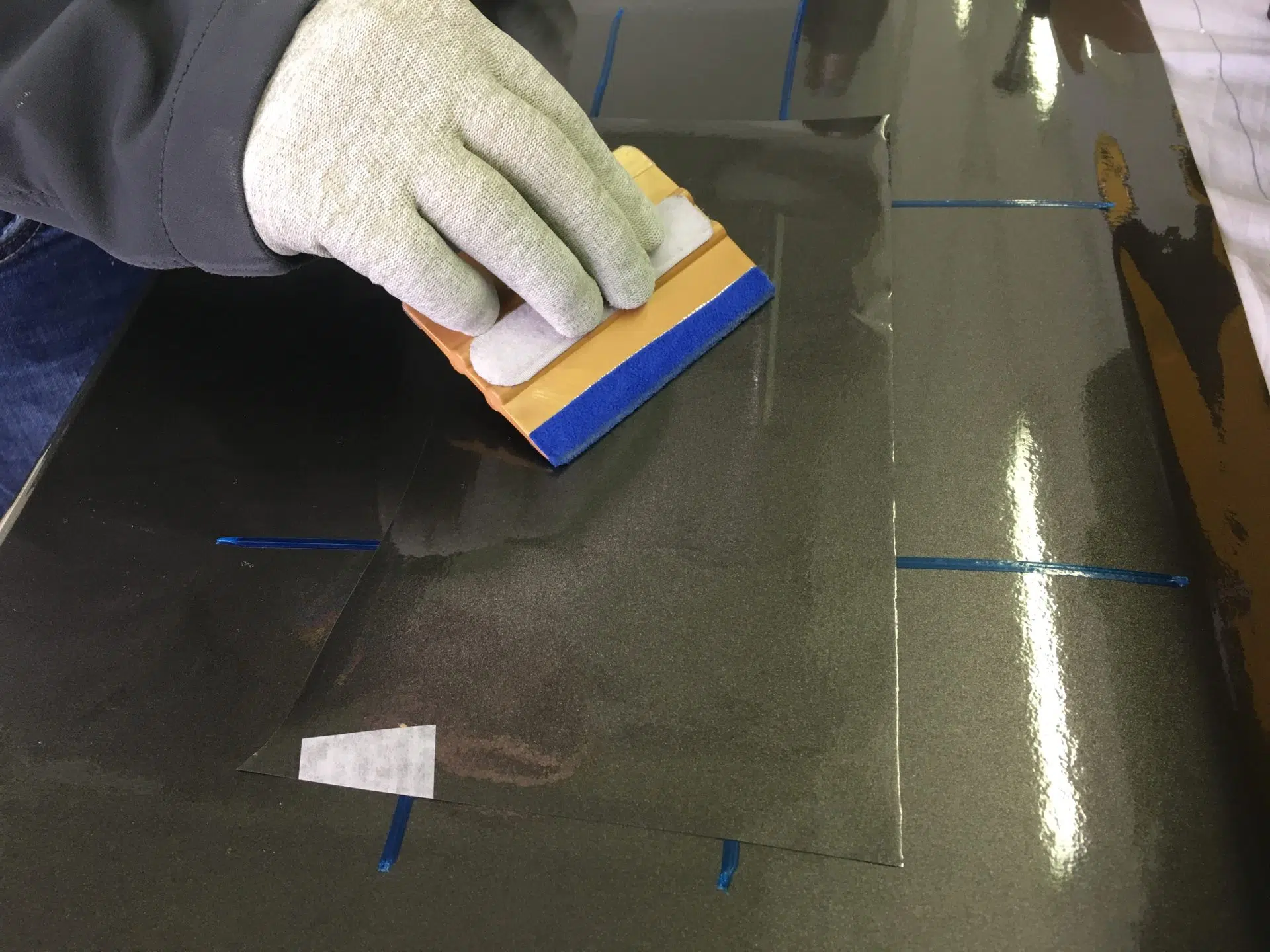 Der Prozess ist präzise: Zunächst schneiden wir die defekte Folie um die Schadstelle herum geometrisch sauber aus. Wenn der Untergrund (Gelcoat oder Lack) durch den Aufprall ebenfalls beschädigt wurde, reparieren, spachteln und schleifen wir diesen Bereich glatt. Erst wenn der Untergrund perfekt ist, setzen wir das neue Folienstück ein.