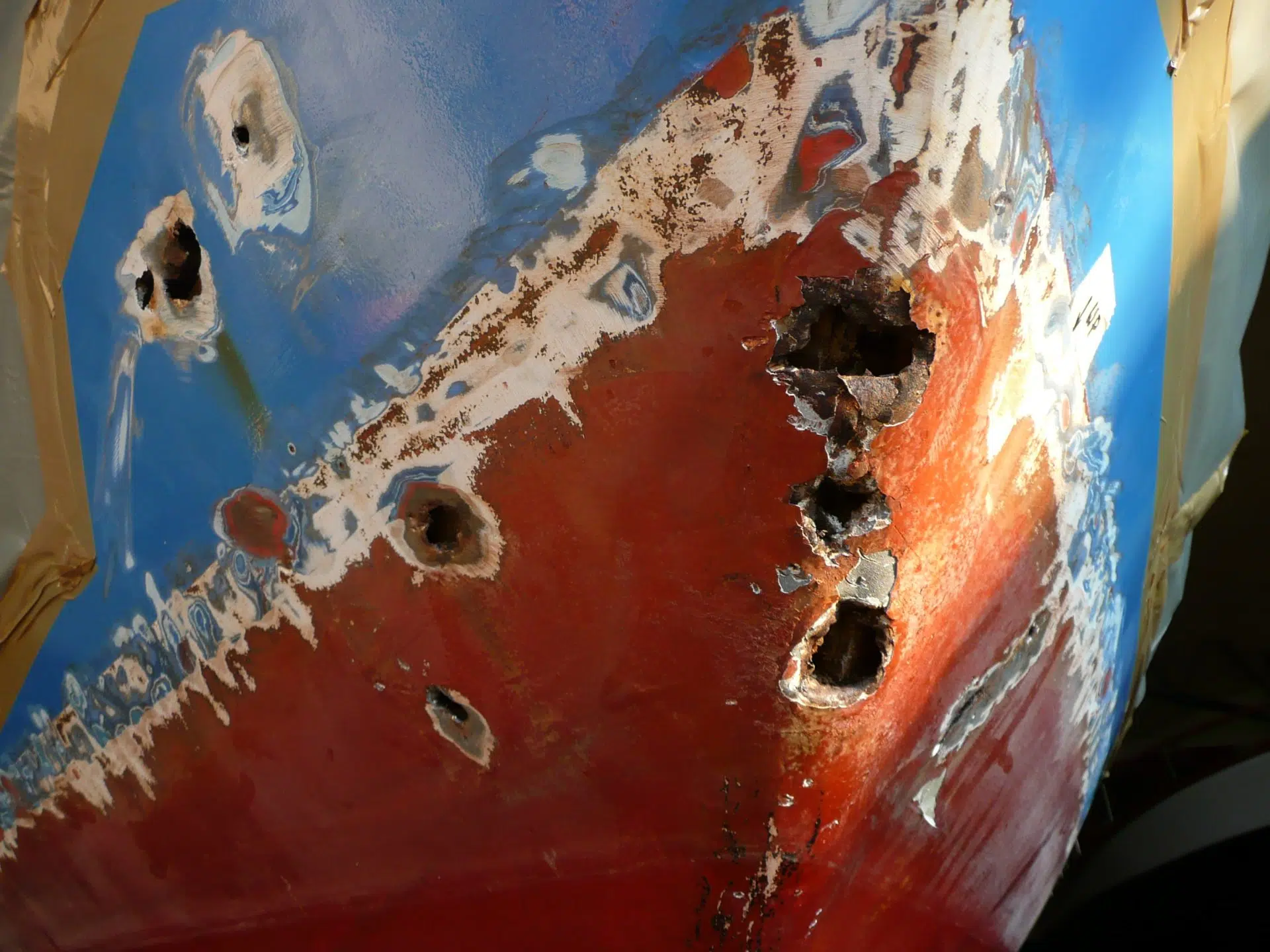Aluminium rostet nicht rot, es oxidiert weiß und bildet oft tiefen Lochfraß (Pitting), besonders unter Edelstahlbeschlägen (Elektrolyse). Das Strahlen legt diese Krater offen. Wir verwenden spezielle Primer-Systeme für Aluminium, um das Metall zu passivieren und isolieren Beschläge bei der Remontage sorgfältig, um erneute galvanische Korrosion zu verhindern.