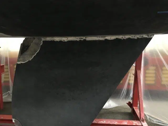 Je nach Umfang der Grundberührung ist ein Freilegen des Kieles und des Kielansatzes im Trocken-Strahlverfahren notwendig. Dieses macht die von außen unsichtbaren Schäden überhaupt erst sichtbar.