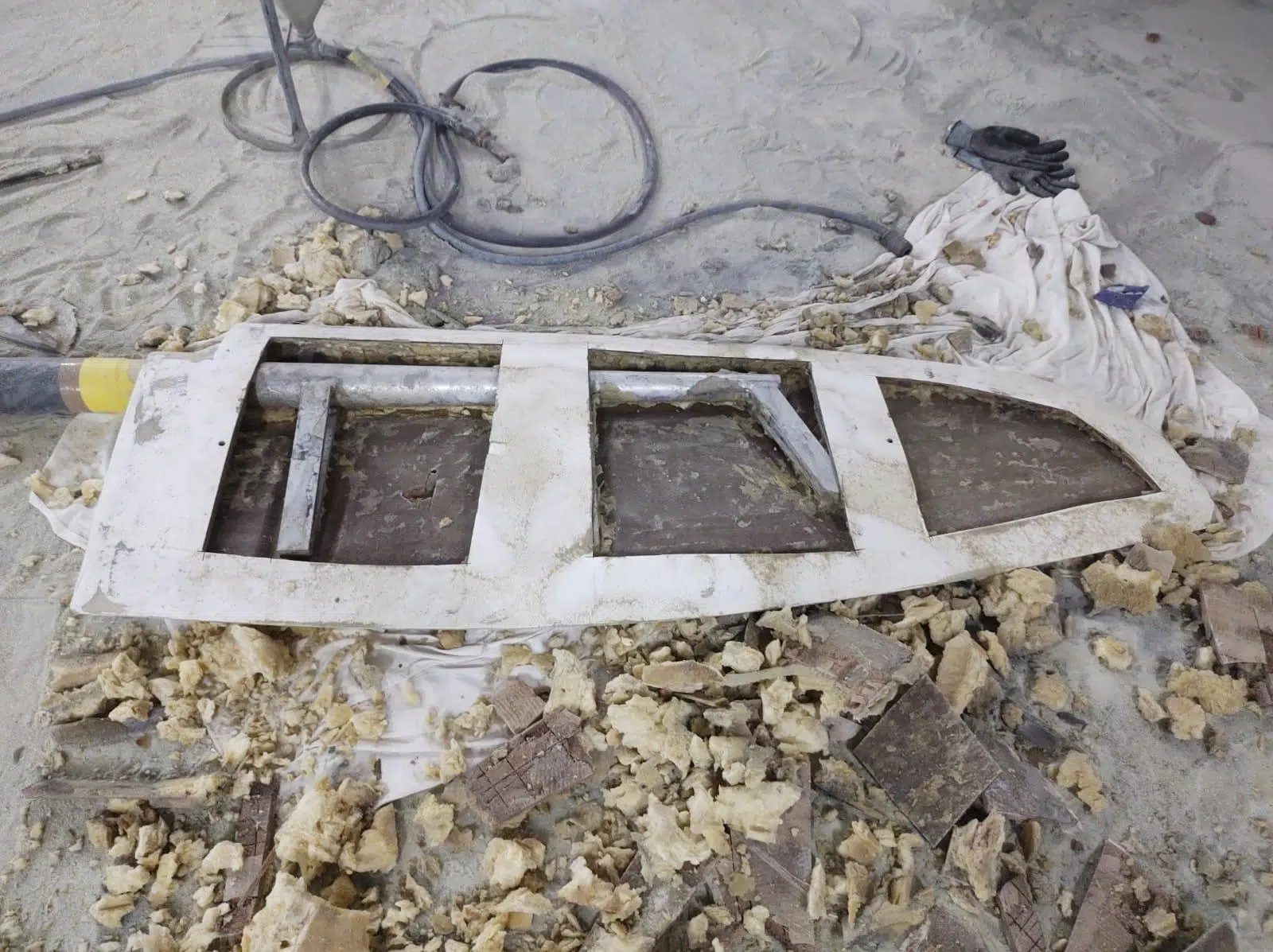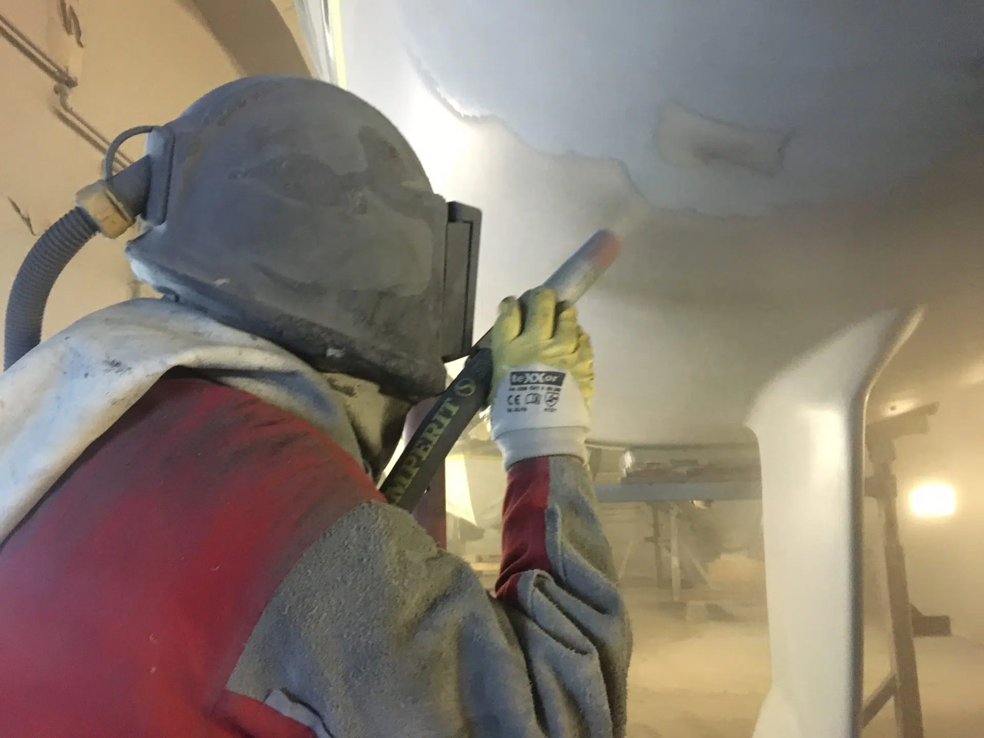 Ein Blick von außen auf das Antifouling reicht nicht. Farbe ist elastisch und verdeckt Risse. Wir legen den Kielansatz und die betroffenen Bereiche durch Sandstrahlen frei. Erst auf dem nackten GFK oder Metall werden Haarrisse und das wahre Ausmaß des Schadens für den Gutachter sichtbar. Parallel prüfen wir innen die Bodenwrangen und die Kielbolzen.