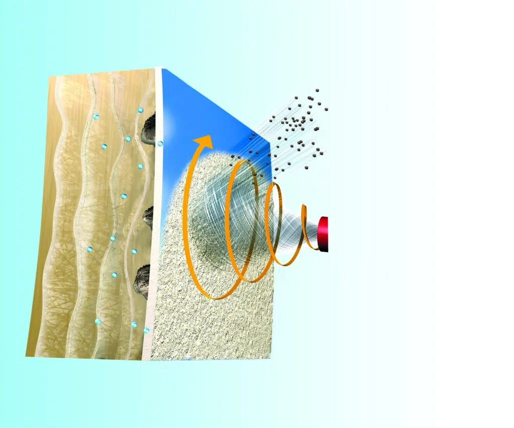 - Das Strahlmittel wird in einem schnell rotierenden Strahl aufgetragen, sodass die Beschichtung schonend bis zum Gelcoat entfernt wird.