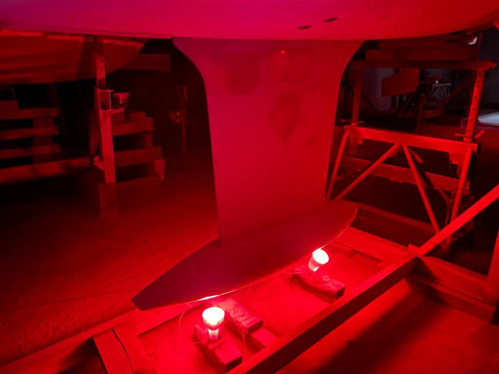 - Bei der Trocknung mit einer Temperatur von mindestens 40°C wird den Hohlräumen die Feuchtigkeit entzogen und die gesamte GFK-Struktur durchgetrocknet.