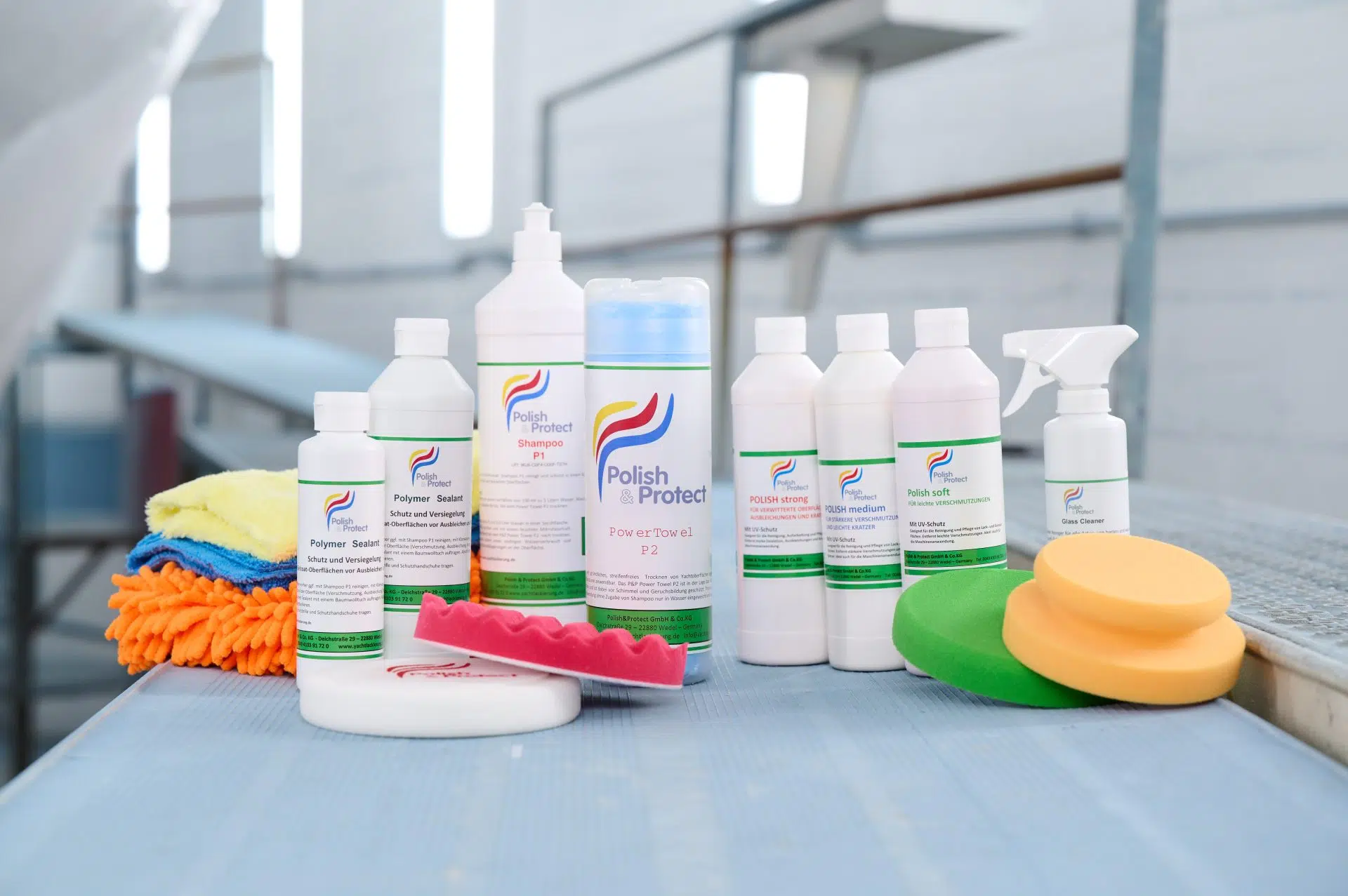 Für die perfekte Pflege der Yachten nach dem Refit in den Wrede-Hallen, rief Firmengründer Peter Wrede im Jahr 2017 die Pflegemittelreihe Polish&Protect ins Leben. Im mittlerweile etablierten Online-Shop können Eignerinnen und Eigner die Reinigungs- und Pflegemittel für ihre Boote erhalten, die tagtäglich in den Werfthallen von Peter Wrede Yacht Refits zum Einsatz kommen.
